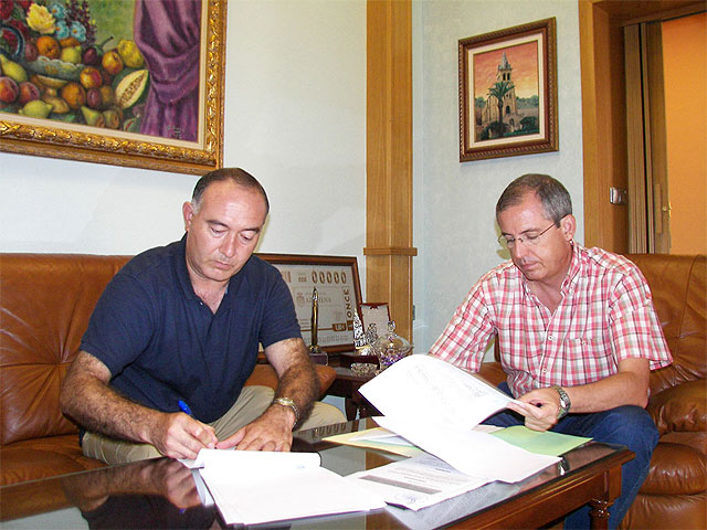 El alcalde de Archena, Manuel Marcos Sánchez Cervantes, y el presidente de la Asociación de Empresarios del Polígono Industrial de La Capellanía, Silvestre Lorente, han firmado esta mañana un convenio de colaboración con el fin de dotar a todo el territorio que ocupa este polígono industrial de más seguridad para sus inquilinos.
