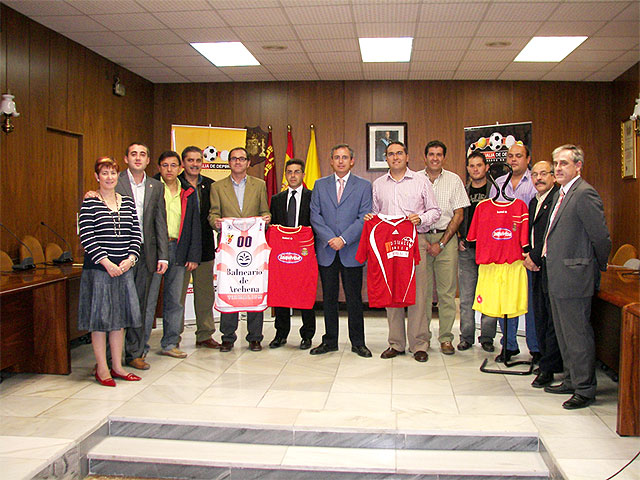 Los tres clubs deportivos de Archena que militan en las categorías absolutas de sus respectivos deportes presentaron ayer en el Salón de Plenos del Ayuntamiento de Archena al Alcalde y Concejal de Deportes, Manuel Marcos Sánchez y Jesús Anselmo García, respectivamente, las nuevas equipaciones que lucirán estos equipos en esta liga 2008-09. Estos son: Desguaces París-La Algaida de Fútbol Sala, que se encuentra en la Categoría Nacional B; Archena Inquivisa de la Territorial Preferente de Fútbol y el Club Baloncesto Balneario de Archena, que está en la Categoría LEB Bronce del Baloncesto Nacional.