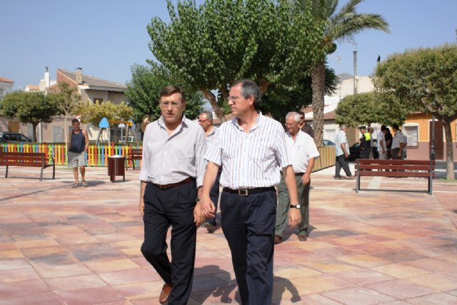 El director general de Vivienda y Arquitectura de la Región de Murcia, Marcos Nogueroles, acompañado por el alcalde de Archena, Manuel Marcos Sánchez, visitó hoy las obras que el Ejecutivo regional, a través de la Consejería de Obras Públicas y Ordenación del Territorio, ha concluido en la localidad para la remodelación integral del Jardín de la Providencia.