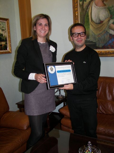En el acto, la Alcaldesa le entregó un diploma oficial de reconocimiento y apoyo a su labor científica, investigadora y universitaria y le felicitó por sus importantes trabajos realizados y publicados, así como por los diversos premios ya recibidos incluso a nivel internacional. Dijo, además, sentirse muy orgullosa de contar en el municipio con paisanos tan ilustres y laureados como el y le deseó muchos más éxitos en su joven carrera profesional.