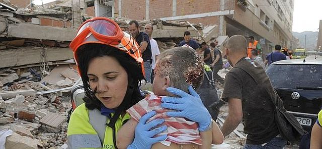Dª. María José Carrillo fue protagonista de la foto de Nacho García (diario de La Verdad) que dio la vuelta al mundo. En la foto, aparece con un niño en brazos después de rescatarlo de entre los escombros.