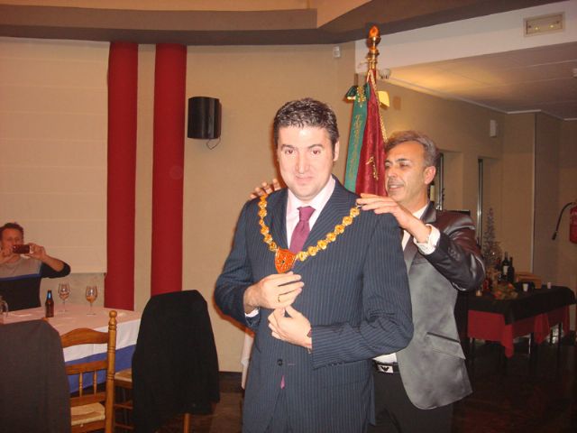 José Antonio Cutillas, presidente de este grupo, le hizo entrega del collar de Don Roy y de la espada de esta agrupación, en presencia de la Concejala del Ayuntamiento de Archena Manuela Moreno, que pertenece a este grupo y de representantes de la Junta Central de Moros y Cristianos del Corpus de Archena.