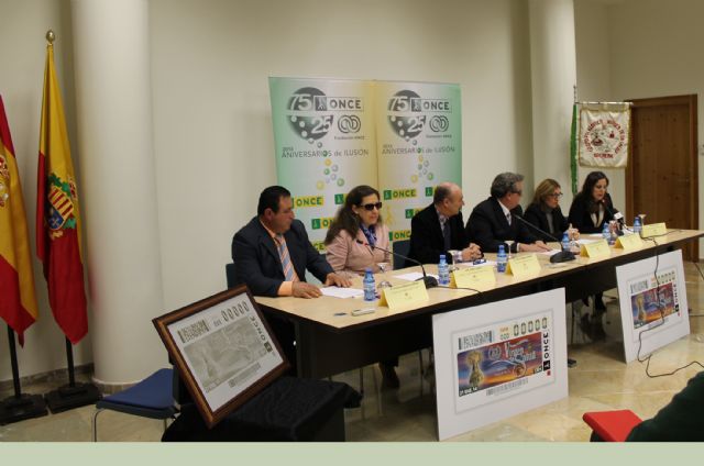Juan Carlos Morejón de Girón, Delegado Territorial de la ONCE en la Región de Murcia, Andrés Rodríguez, Concejal Portavoz, y Magdalena Ortiz, Concejal de Cultura y Turismo del Ayuntamiento de Archena, han presentado este cupón, en un acto en el que han estado acompañados por  Teresa Lajarín, Presidenta del Consejo Territorial de la ONCE, y Francisco Palazón, Presidente del Grupo Folklórico Virgen de la Salud de Archena. También asistieron los Concejales Francisco Pérez y Fulgencio García.