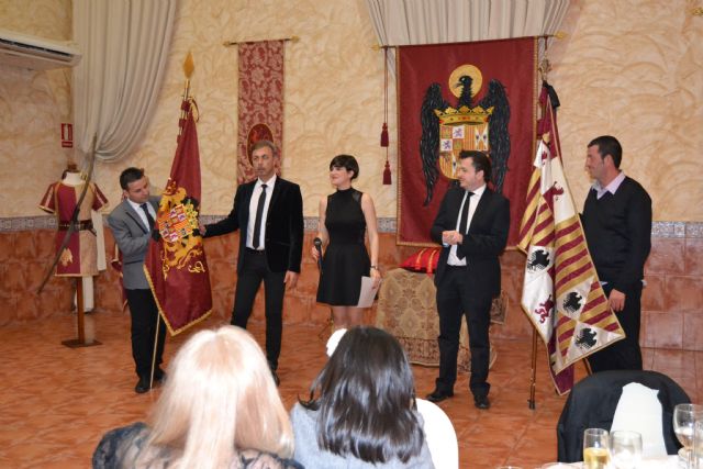 Su bandera, principal seña de identidad, lleva el escudo que identificó a los Reyes Católicos y sus trajes oficiales son un fiel reflejo de los cristianos de esa época. En un agradable ambiente, cerca de los cien comensales, entre los que se encontraban, el presidente de la Junta Central, Tomás Guillén, que dio la bienvenida a nuestras fiestas a esta mesnada y los animó a no desfallecer ante este nuevo reto. Además, estuvieron presentes también, el presidente de los Caballeros y Damas de los Reyes Católicos de Lorca, Luis Torres, así como un gran número de festeros de este grupo de la Ciudad del Sol, ya que este acto también sirivió para un hermanamiento entre ambos grupos homónimos, firmando al acta protocolaria e intercambiándose regalos. Les acompañó el Concejal de Lorca Agustín Llamas.