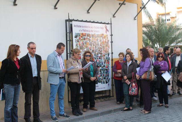 Mientras se producía dicha concentración, se exhibía en la fachada del Ayuntamiento un gran cartel donde podía leerse 'Archena también le saca Tarjeta Roja a la Violencia de Género', acompañado por centenares de fotografías de hombres y mujeres solidarias.