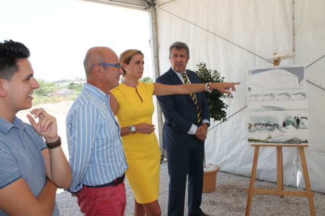 La Alcaldesa de Archena, Patricia Fernández, y el Consejero de Desarrollo Económico, Turismo y Empleo, Juan Hernández Albarracín, han colocado este mediodia la Primera Piedra del edificio del futuro Vivero de Empresas de Archena, que se construirá en la zona de nueva urbanización llamada Pago del Barranco, dentro del casco urbano.
