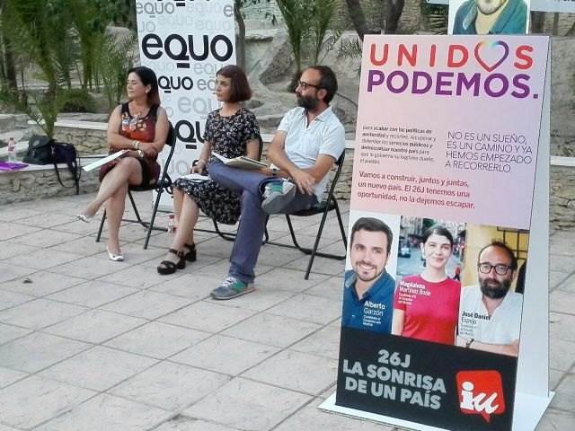 Acompañada por José Daniel Espejo, cabeza de lista al Senado, y Ginés Mateo, concejal de Ganar Archena, Martínez Bode ha afirmado que Unidos Podemos defiende "un nuevo país" para que la ciudadanía "viva con dignidad", y esto pasa por "tener empleo, con salario suficiente, y, en su caso, unas prestaciones sociales que al menos cubran las necesidades básicas".