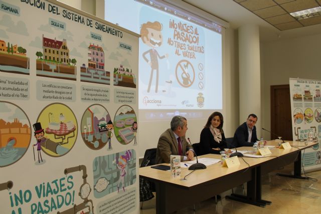 6.000 panfletos informativos, 3.000 imanes, las redes sociales municipales, así como la web y periódico local impreso municipal (con una tirada de más de 6.000 ejemplares) son los medios de comunicación que se van a emplear para llevar a cabo la campaña de sensibilización - ¡No viajes al pasado! No tires toallitas al váter que han presentado esta mañana la Alcaldesa de Archena, Patricia Fernández, junto a Jesús Artero, gerente de ESAMUR, y Amador Rancaño, jefe de zona de la Depuración de aguas residuales.