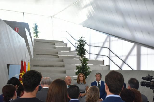 La Alcaldesa de Archena, Patricia Fernández, el Consejero de Empleo, Universidades y Empresa, Juan Hernández, y el Director de INCYDE, Javier Collado, han inaugurado esta mañana el edificio que alberga el Vivero de Empresas de Archena. Situado en la zona del Pago del Barranco, en la calle Felipe II. Es un inmueble poliédrico de planta poligonal, con una superficie total de 346 metros cuadrados y está formado por los siguientes espacios: zona de coworking, para 16 puestos; dos despachos para cuatro empresas, sala de reuniones, office con microondas, cafetera y frigorífico, graderío-sala de conferencias, recepción y espacio común para almacenamiento y otros servicios.