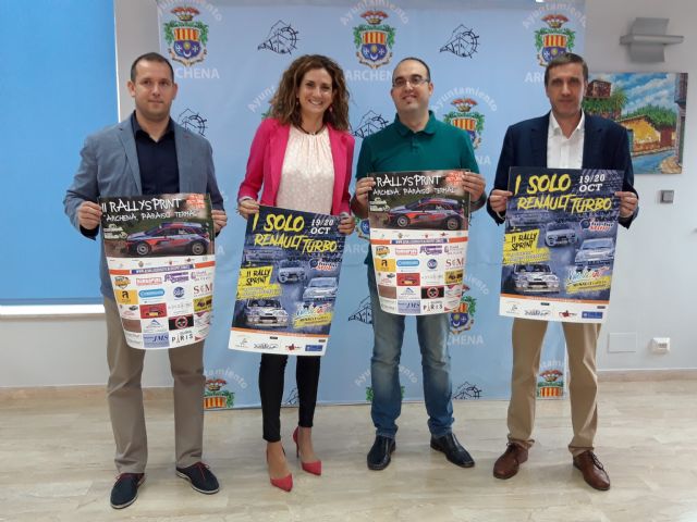 La Alcaldesa de Archena, Patricia Fernández López, y los Concejales Fulgencio García Nicolás y Antonio José Palazón han presentado en el Ayuntamiento el II Rally Sprint y Solo Renault Turbo, que se celebrará en la localidad este próximo fin de semana por un circuito que contará de seis pasadas de 10 kilómetros cada una de ellas dentro del municipio.