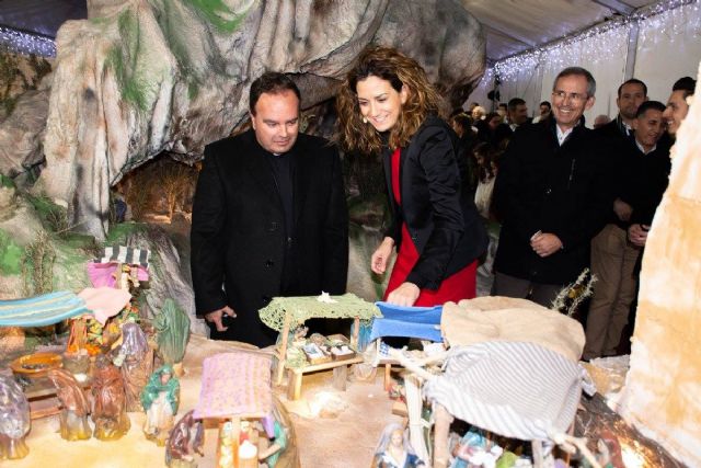 El secretario general de Familia, Manuel Marcos Sánchez, y la alcaldesa de Archena, Patricia Fernández, inauguraron la noche de ayer Belén Municipal, que se encuentra ubicado en el patio del antiguo colegio Miguel Medina. Cientos de vecinos asistieron a este acto y quedaron admirados por la creatividad y el trabajo realizado por los usuarios del Centro de Día "Llano del Barco", mientras sonaban en directo los villancicos que ofreció la rondalla de los usuarios del Centro de Día de Mayores. Después del corte de cinta tradicional, el vicario y párroco de la iglesia de San Juan Bautista, Alfonso Alburquerque, bendijo el Belén y acompaño a la primera autoridad municipal a contemplar los distintos pasajes y secuencias de esta instalación.