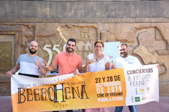 La Alcaldesa de Archena, Patricia Fernández, el Concejal de Festejos, Anselmo Campuzano, el responsable de la organización, Héctor Pastor, y uno de los representantes de las marcas de cervezas, que se expondrán, han hecho públicos esta mañana todos los contenidos del Festival de la Cerveza de Archena, la III edición de 'Beerarchena', que va a tener lugar los días 27 y 28 de septiembre en el Cine Municipal de Verano, de 7 de la tarde hasta la 1 de la madrugada.