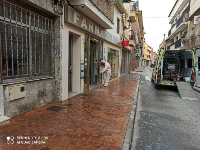 El Ayuntamiento de Archena está intensificando desde esta mañana los trabajos de limpieza y desinfección en calles y plazas de la localidad, extremando los tratamientos en las zonas de mayor tránsito peatonal, como son los edificios públicos, centro de salud y sus zonas colindantes, supermercados, farmacias, parques y vías principales de mayor circulación.