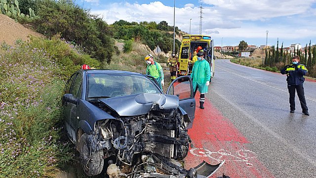 Servicios de emergencia han rescatado y trasladado al hospital al conductor de un turismo que ha resultado gravemente herido al salir el vehículo que conducía de la vía y chocar contra una farola, en la carretera RM-B10, muy cerca del casco urbano de Archena.