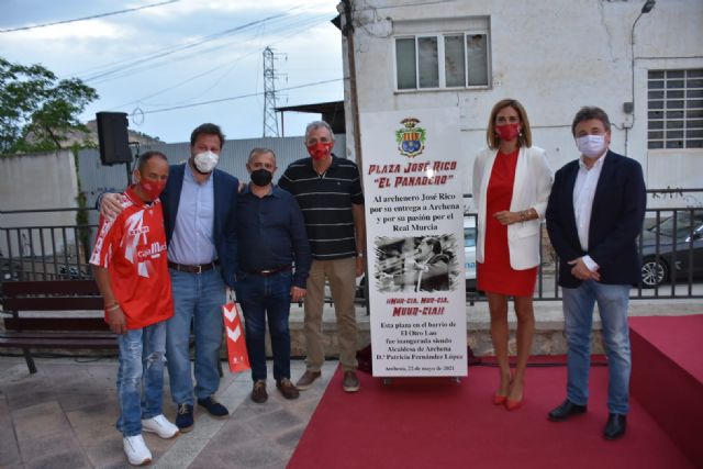 Alcaldesa Archena, Patricia Fernández, Concejal de Deportes, Anselmo Campuzano, y Concejales del Equipo de Gobierno y resto de la Corporación, el Club Real Murcia, la federación de peñas murcianistas, la pedánea del barrio del Otro Lao, y muchos aficionados de clubs futbolísticos archeneros rindieron anoche un emotivo homenaje al que fuera "mejor animador y un apasionado del Club Real Murcia y archenero", José Rico 'El Panadero de Archena', según palabras de la Alcaldesa, dando nombre a una plaza en el centro de su barrio de toda la vida, 'El Otro Lao'.