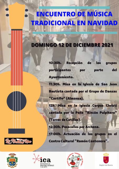 Buenos días, adjunto remito cartel del Encuentro de Música Tradicional en Navidad, a celebrar en Archena el próximo 12 Diciembre 2021, con la participación de los grupos: