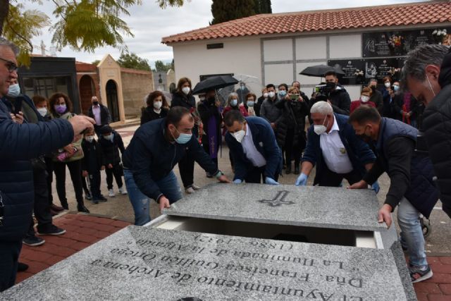 La alcaldesa de Archena, Patricia Fernández, preside el acto de traslado al monumento funerario del Camposanto de Archena de Francisca Guillén Ortega, más conocida por 'La Iluminada de La Algaida' o también 'la Tía Quica' quien ha recibido, esta mañana, su descanso definitivo en el monumento funerario que el Ayuntamiento de Archena ha erigido en su honor por configurarse como un personaje histórico popular.