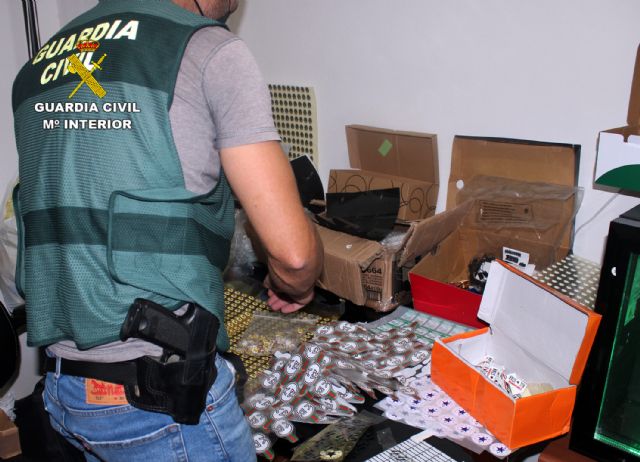 En un almacén ubicado en Archena, la Benemérita se ha incautado de cerca de 10.000 prendas falsificadas, más de 16.000 réplicas de etiquetas de reconocidas marcas, útiles para su manipulación, documentación, material de embalaje y un vehículo de alta gama