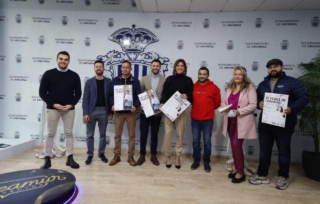 La alcaldesa de Archena, Patricia Fernández López, junto al concejal de Comercio Damián Pagán Abellán, y el presidente de la asociación de comerciantes 'Archena Express', Jesús Pay, presenta la IV Feria de las Comuniones de Archena, que se celebra los días 14 y 15 de enero en la localidad.